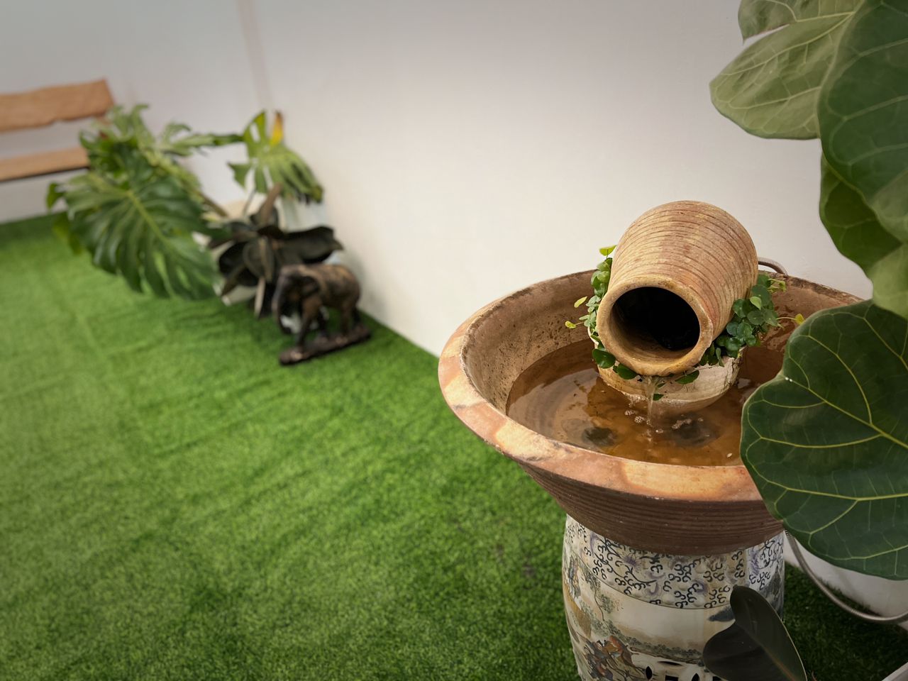 Homestay yg bertema courtyard( indoor garden) yang biliknya ada garden view.